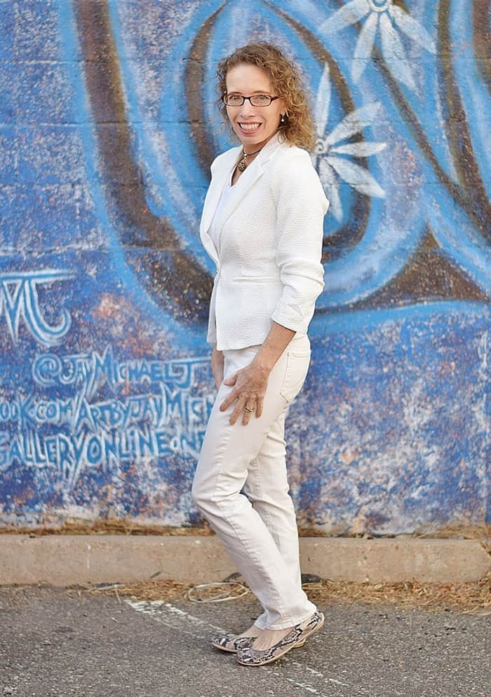 Of course, there is the realistic side of wearing white jeans, or even mostly white at any time of year. This would include the stains, dinginess and spills that can happen. And I know, many women will say that they can’t wear white because of these issues. And I get that!