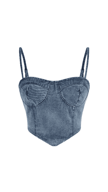 For the longest time I wasn’t a huge fan of denim, mostly because it required buttons and I was more of an elastic/stretch girlie. Welp, not anymore! Now I am a huge fan of anything denim. Like Gina Kirschenheiter’s denim bustier confessional top. But, I do have to tell ya that it is sold out. Don’t worry though because we have great similar vibes, so go ahead and bustier a move down to them below.